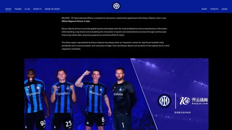 开云体育与意大利豪门足球俱乐部国际米兰签署了一份协议,成为官方区域合作伙伴。这项合作为两家公司开拓市场提供了更多机会,有利于进一步深化体育领域的改革,实现线上线下双通道的数字体育新模式。